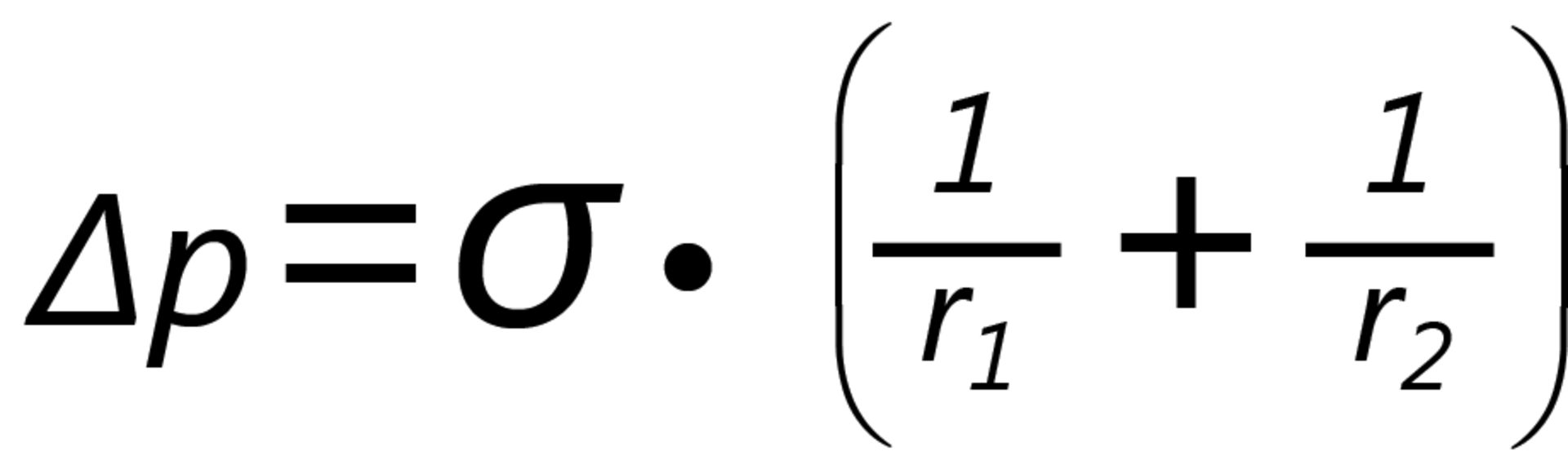 Bei einer gekrümmten Flüssigkeitsoberfläche besteht gemäß der Young-Laplace-Gleichung ein Zusammenhang zwischen den Krümmungsradien r1 und r2, der Oberflächenspannung σ und dem Laplace-Druck p:
