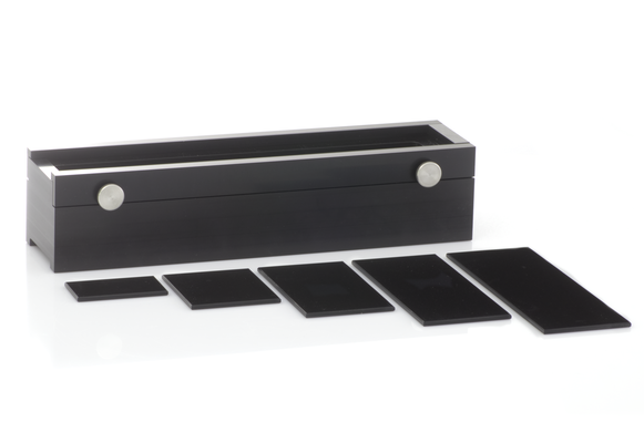 Mit dem Set CP4501C können Sie die Schaumhöhenerkennung Ihres DFA100 regelmäßig kalibrieren und so Ihre Schaumanalysen zum Beispiel in routinemäßige Qualitätsprozesse einbinden. Bei einem Kalibriervorgang simulieren präzise gearbeitete Plexiglasscheiben, welche passgenau in einen Rahmen gesetzt werden, eine Schaumsäule auf einer Flüssigkeit. Eine der Scheiben ist daher transparent und zur Simulation der Flüssigkeitshöhe vorgesehen. Fünf weitere sind getönt und repräsentieren mit den genau eingehaltenen Breiten 30, 60, 90, 120 und 150 mm jeweils den intransparenten Schaum. Das Set wird Zusammen mit einem Zertifikat geliefert, das die präzisen Abmessungen der Scheiben dokumentiert.