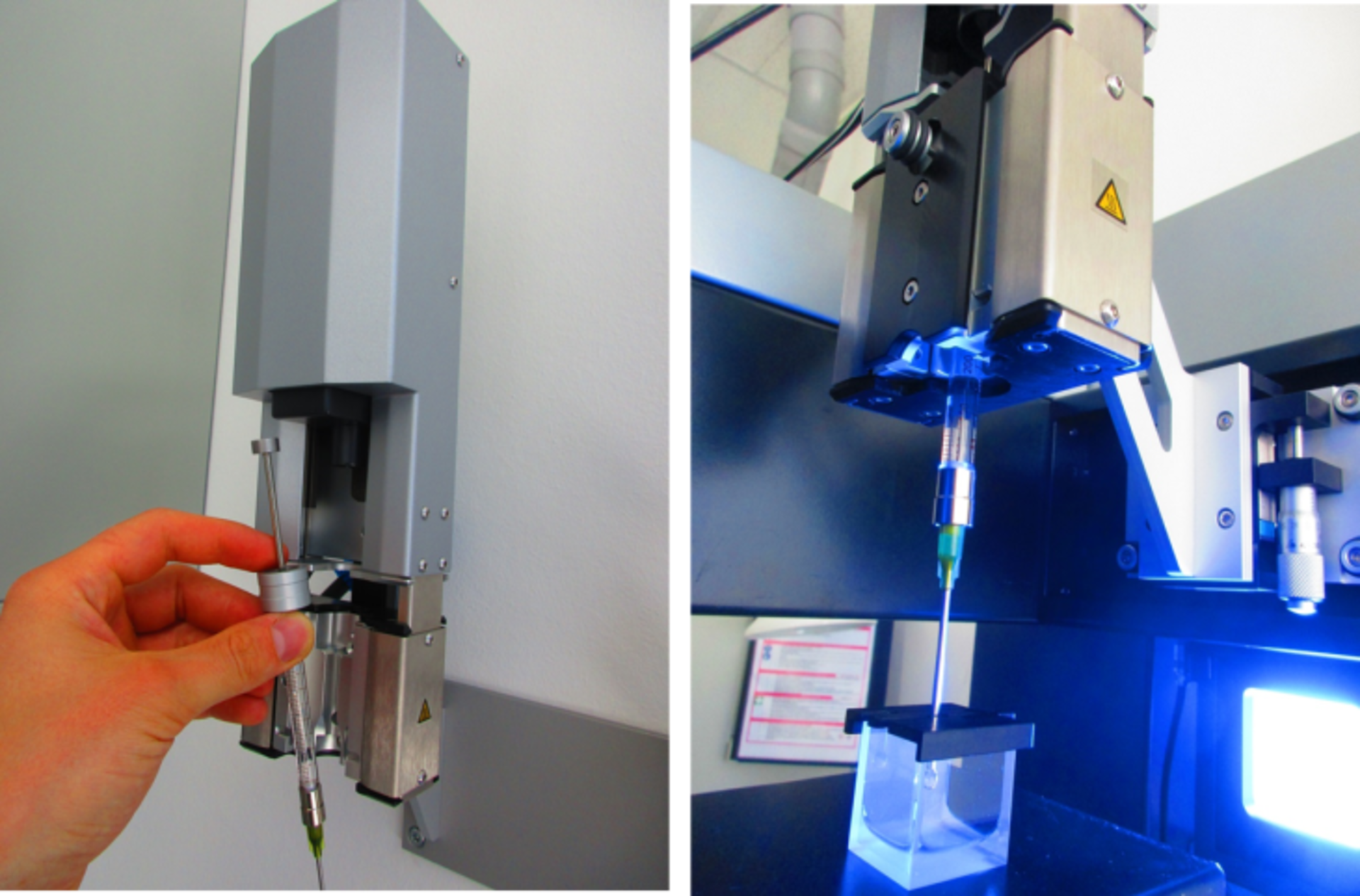 The Oscillating Drop Method was used to determine the viscous modulus E’’, elastic modulus E’ and viscoelastic modulus E [1, 2]. To this end, the sample was drawn into a glass syringe, which was used in a Drop Shape Analyzer – DSA100 in combination with an Oscillating Drop Module – ODM. The automatic detection and coupling of the syringe plunger and the high degree of automation that the ADVANCE software permits enable both high precision and excellent repeatability of measurements.